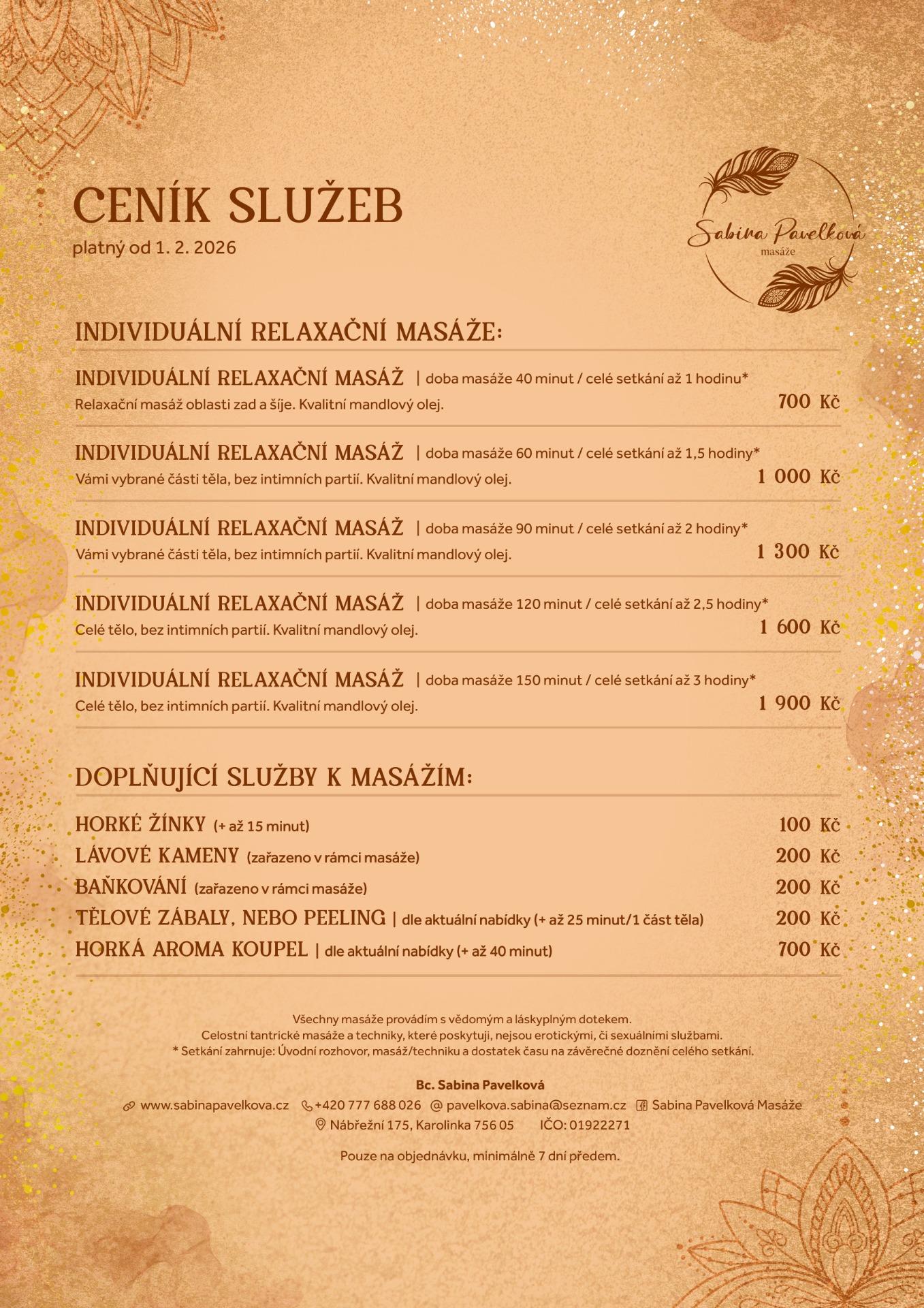 DOPLŇUJÍCÍ SLUŽBY K MASÁŽÍM